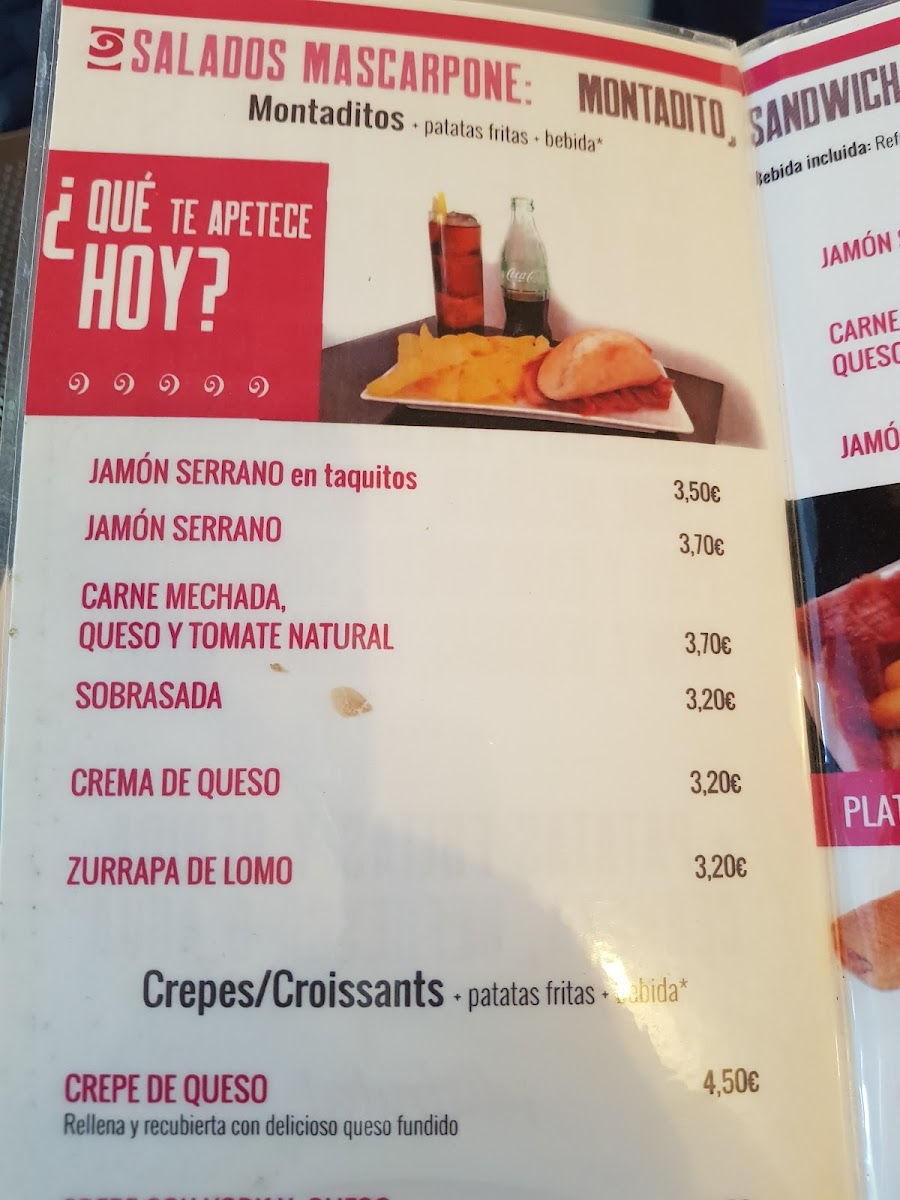 Mascarpone Reina Mercedes Heladería Cafetería offers a menu that balances classic Spanish flavors with creative twists, making it a standout spot in Sevilla for both casual bites and indulgent treats. The breakfast options shine with the Media Tostada de Jamón Serrano Y Tómate Triturado Con Aceite de Oliva Café Con Leche Descafeinado, a perfect combination of savory and smooth coffee. For those seeking variety, the Variado de Tartas presents an enticing selection of cakes that pair beautifully with a warm Café Capuchino. Light yet satisfying choices like the Tostada Con Pavoy Queso Fresco Tomate Guacamole provide a refreshing mix of creamy, tangy, and slightly spicy flavors, while the classic Pepito de Jamón and Tostada de Jamón Y Aceite showcase traditional Spanish simplicity done exceptionally well. The menu also highlights the Media Tostada de Jamón Serrano Con Tómate Triturado Y Aceite de Oliva, emphasizing quality ingredients in every bite. Overall, Mascarpone Reina Mercedes combines well-crafted sandwiches, rich desserts, and expertly brewed coffee to create a menu that feels both comforting and refined, making it a reliable choice for a relaxed meal or a sweet treat in Sevilla.
